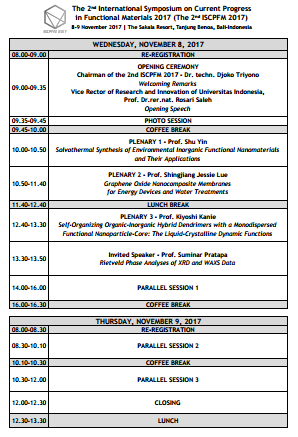TheĀ 2nd International Symposium on Current Progress in Functional Materials (2nd ISCPFM 2017) will be held in The Sakala Resort, Tanjung Benoa, Bali, Indonesia on November 8-9, 2017. The local time at the conference area is GMT+8.